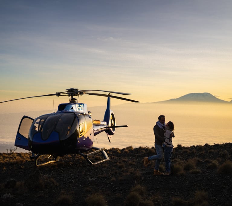 The Kilimanjaro helicopter tour starts from Moshi Airport. Taking off, the pilot will point the helicopter to the East, making a flight over the city. During your flight, you will be able to see all the climbing routes to Kilimanjaro while skirting the mountain range. You will also fly over Lake Chala which is the largest tectonic lake in the Kilimanjaro area. Enjoy the surroundings view of Uhuru Peak - the summit area. Watching from above!