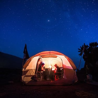 Solar lighting in dining tent and personal tent